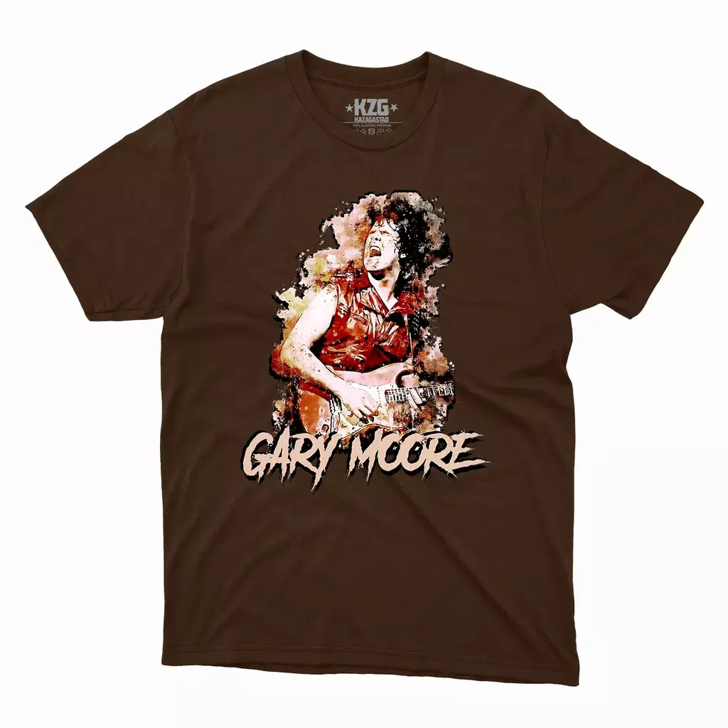 Camiseta exclusiva da loja do KazaGastão em homenagem ao grande guitarrista GARY MOORE, nascido na Irlanda do Norte, que teve destaque na carreira solo, mas tocou no Thin Lizzye no Skid Row original, entre outras.